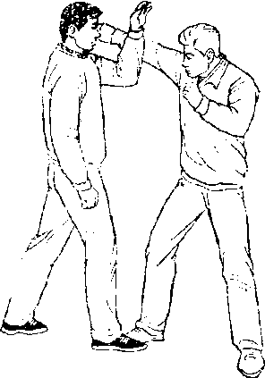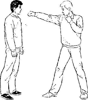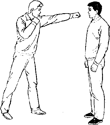 甲、乙双方搏击,乙正 面用左直拳击打甲面部(图 397)。