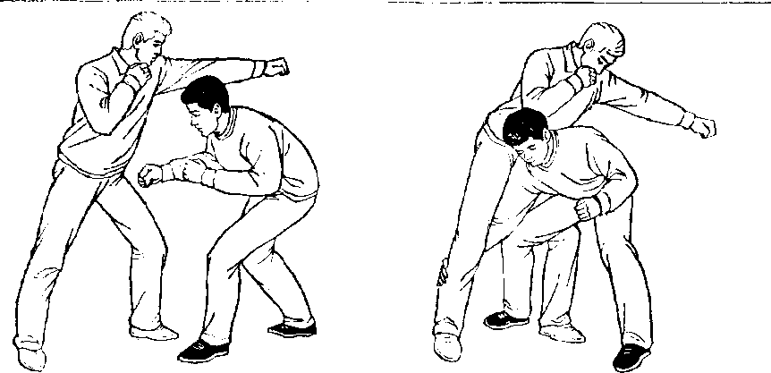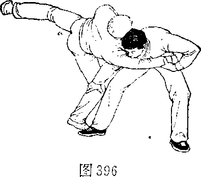 图3972,向乙裆下上右步,同时右手抱乙右腿(图399)。