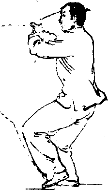 此势要求肩与胯合、肘与膝合、手与脚合,这样六节相对, 手与蹬脚的方向就能一致,亦能站得稳了。