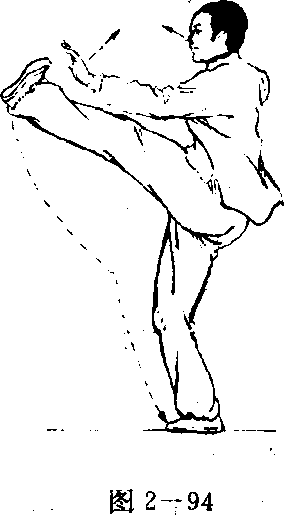 9 .蹬脚分掌动作同“4”,唯左右方向相反,此为左蹬脚 (图 2 — 94)。