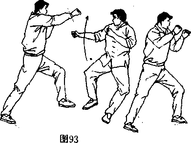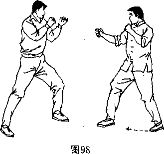 [动作要领]由戒备势开始(图98〉,李小龙迎着对手的攻