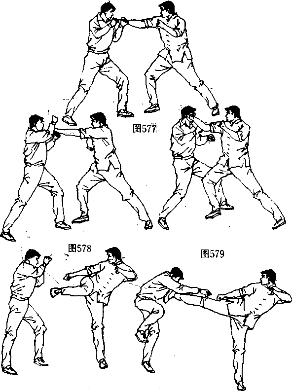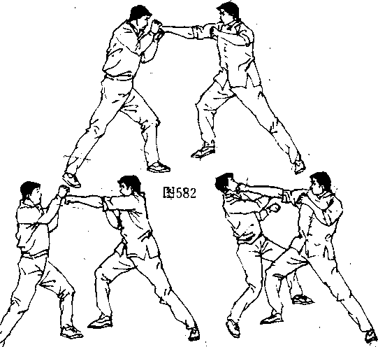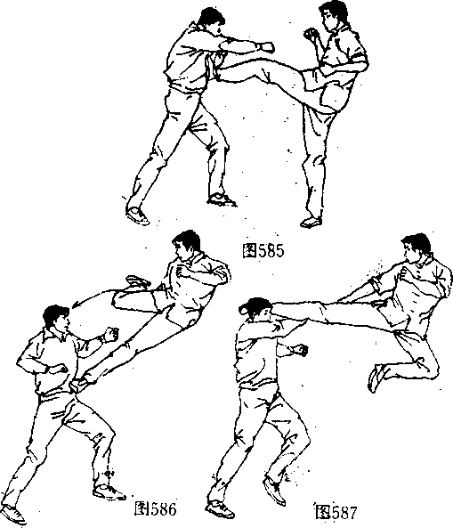 出颌部空档(图582、迪而用左手直拳重击之(图583〉,再用