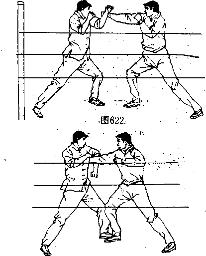 [技击要诀]用手牢牢抓住擂台护绳施展武技,可使自己- 的身体重心的稳定性大木加强,并解除了心理上怕被对手趁 虚而入、进行反击的恐惧和后顾之忧,便于将全身力量集中于