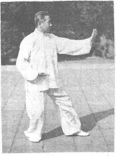 要求:(1)右足尖里扣和迈出右腿时身体均不可有起伏。 (2)转体分掌时身、手、眼要协调一致。