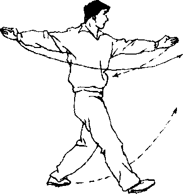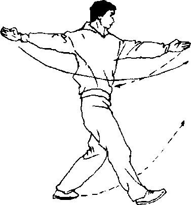 [注意]初练时,腿踢的不要过高,起跳后上体尽量前倾, 以防仰摔倒地。