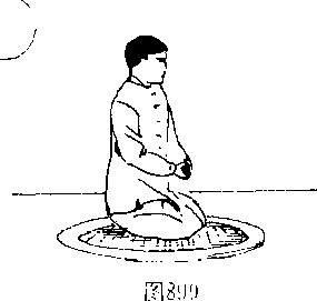 完成以上练法后,开始进行“聚丹功\把所吸太阳、天然 和大地之三种精气归于丹日,内练精气,再送于全身各部,通 过“阴阳循环一大周天”功法增强功力口(图9。。)