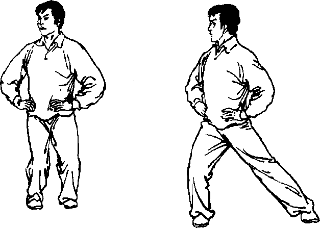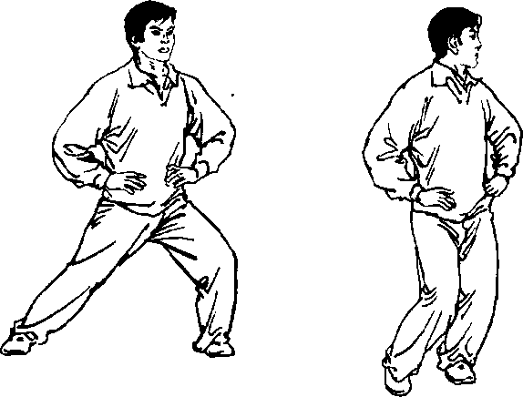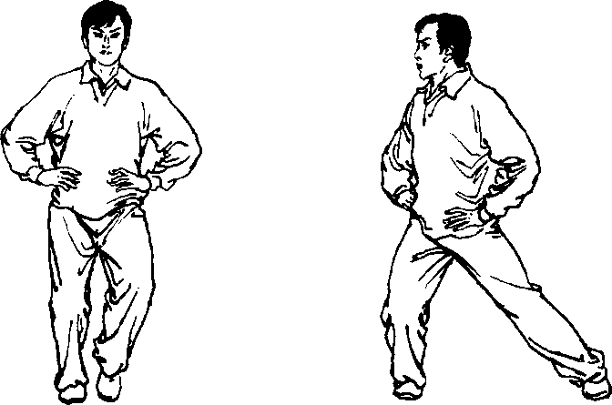 5.右脚收拢并步,动作同前。如此连续练习,左行数次后, 可反向右行练习。