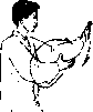 (6)重心移向左腿并屈蹲,上体微右转,右脚收提 于左脚内侧;同时,两掌收于体前,右掌收于胸前,左 掌收于腹前,掌心斜相对(图27)。