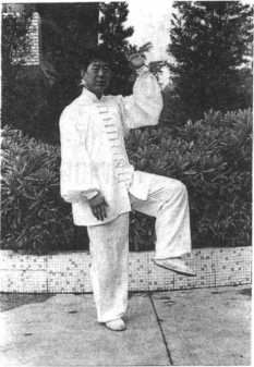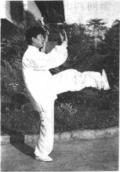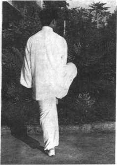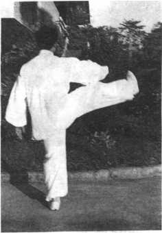 前蹬(喜鹊登枝,如图35-1)。左小腿落下后,脚跟勾向