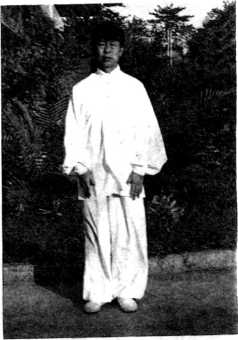 右脚落地同时左脚微右拧,面向西北,右掌从右腿 上砍过落腿侧(如图36—1)。左脚向右外侧上步,右脚 向右拧转,身随之转面东,左掌过脸前从左腿上砍过落 左腿侧,两脚平行,面东成分马掌(如图36—2)。