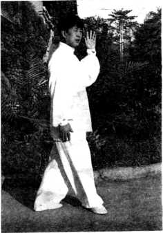 要领:手脚相随,分马掌如轻弹身上灰尘,不要用 力。