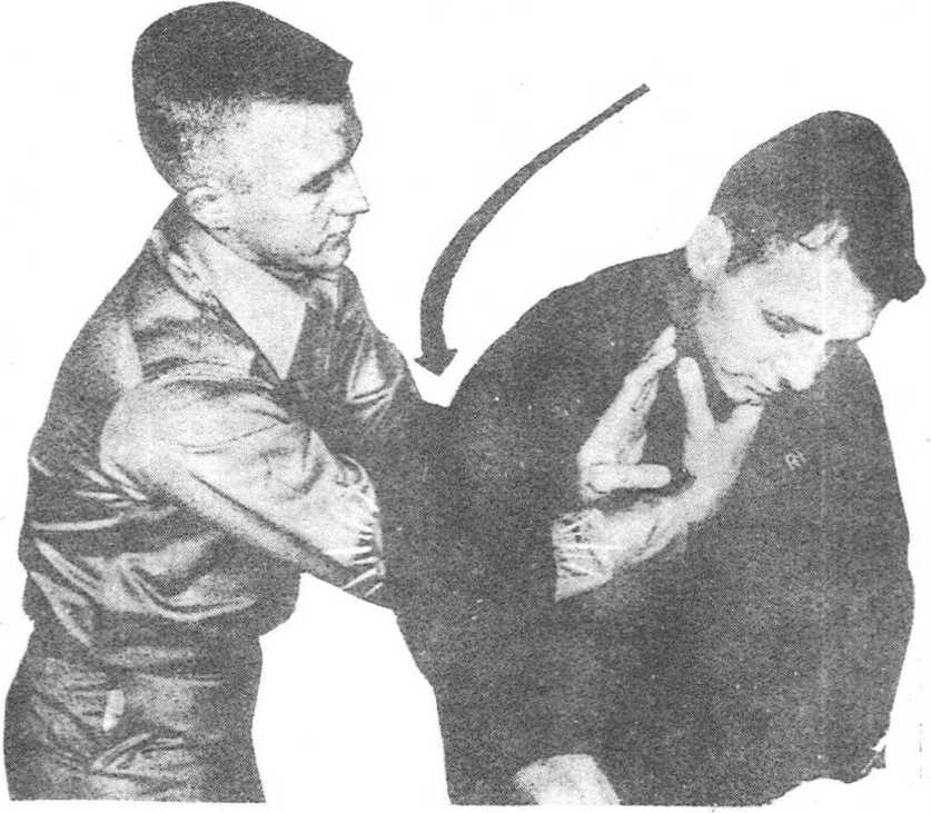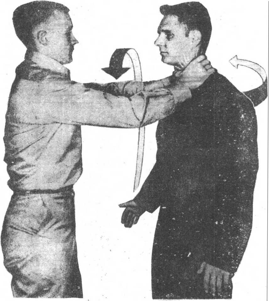 近身搏击时.双手从腕部交叉揪住对方敝开的衣领,双 手背部成剪式紧紧卡住对方喉部.腕部发力,可使对方失去 抵抗能力。如从背后实施攻击,可用双臂环绕到对方喉部前交叉抓 住其衣领,往后揪拉的同时以双手和腕部的用力绞杀制服对 手。(图3—1)S 4—1 猛击肘关节4,弧形抡拳破卡喉法1当对方刚刚掐住你的脖颈时,你用右臂在身前成弧形向 上抡出,以小臂向下猛击对手肘关节,可以摆脱其控制.(图 4—1)