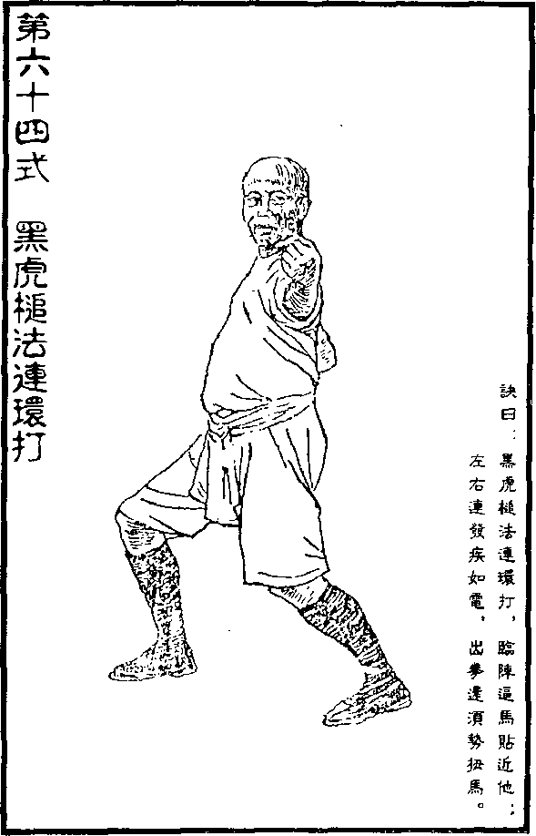 诀日:黑虎槌法连坪打,临阵逼马贴近他;