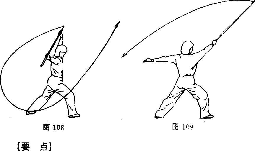 手持棍由后经下向右前上方撩出,力达棍梢(109)。