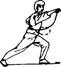 ④右脚向后退步;同时,右拳直向前冲, 拳心朝下,左拳收至腰间,拳心朝上;目视 前方(图181)0