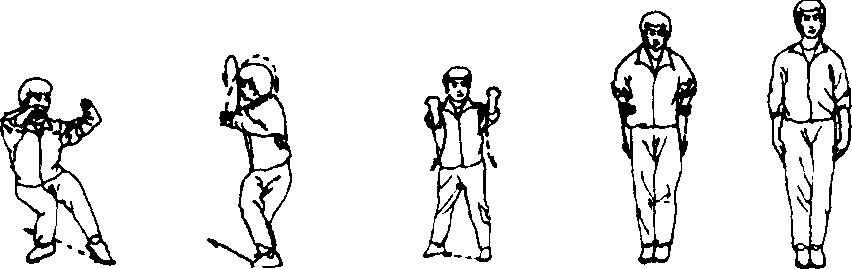 两拳变掌下垂于身体两侧;目视前方(图190)。