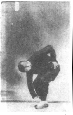 基,两足之形式图,左作右,右作左?两相互换之式同,两手之 劲同时往前伸.两肩亦虚空着往回缩-腰中之劲,微有往下塌之 意,是取虚空之意也。周身内外之劲?神气收敛,气往下沉,仍 如前(见图28)。