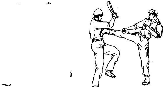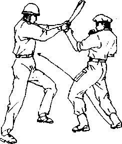 在格斗中,当你对付一个持警棍或铁棒的敌人时,一定要 拿握好时间和合理地利用距离。因为小小的差错也会令你身 陷危境。另外,还要抓紧转瞬即逝的时机,因为机会一过,你会 很难再策动攻势。所以对每个动作的步骤都要加以悉心练习, 并学以致用。