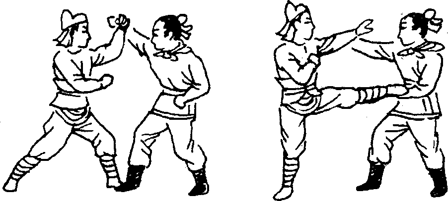 【要求】用臂格挡套有化劲,两腿下蹲要快,出腿缠扫 敌腿要迅猛有力。