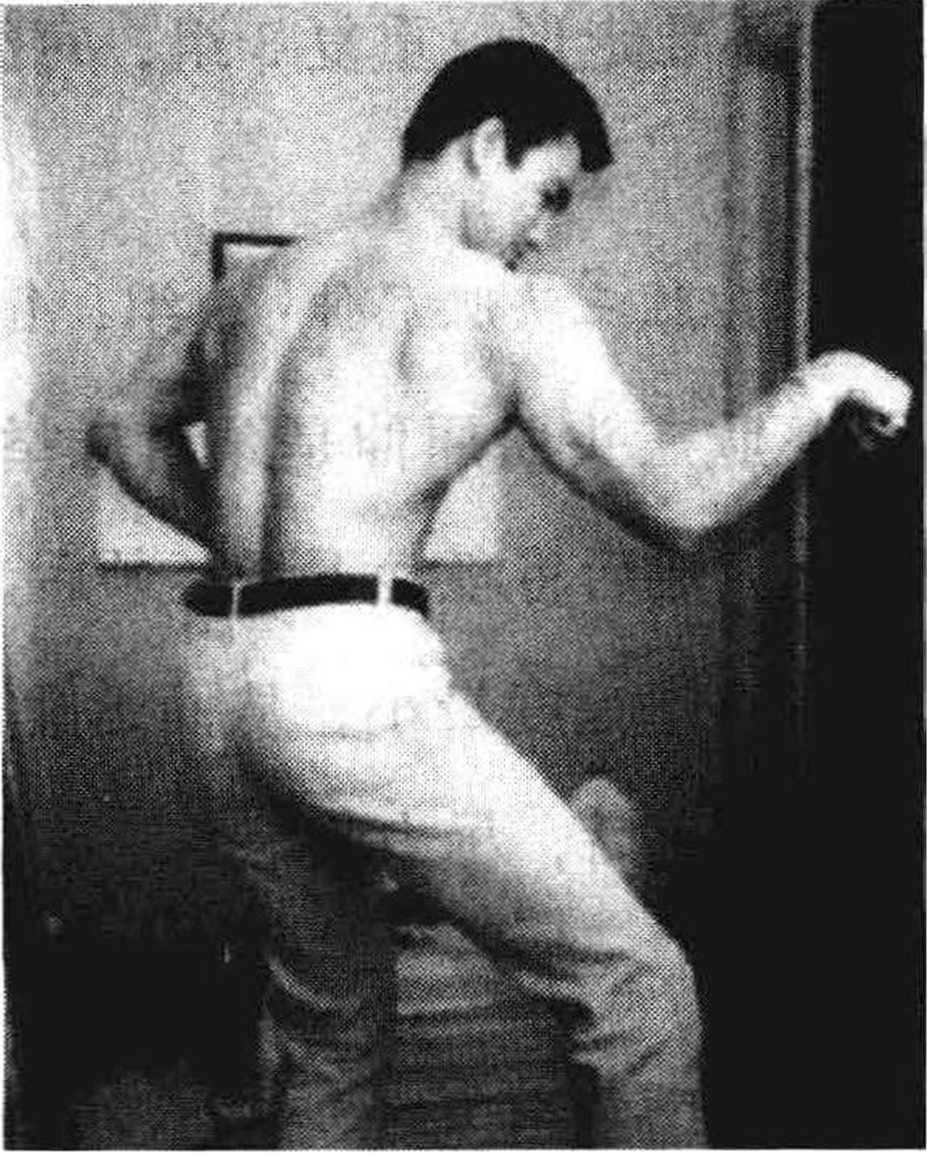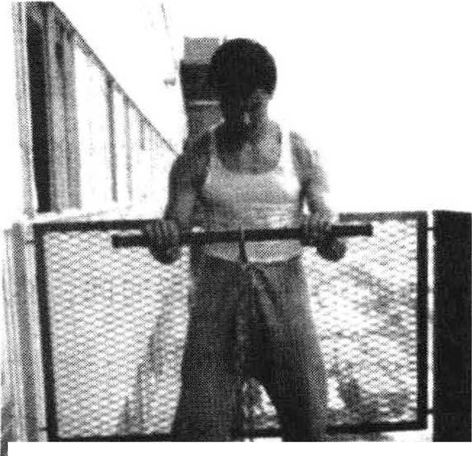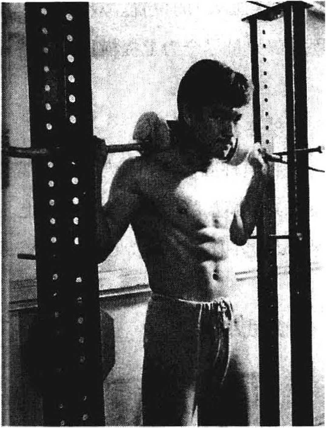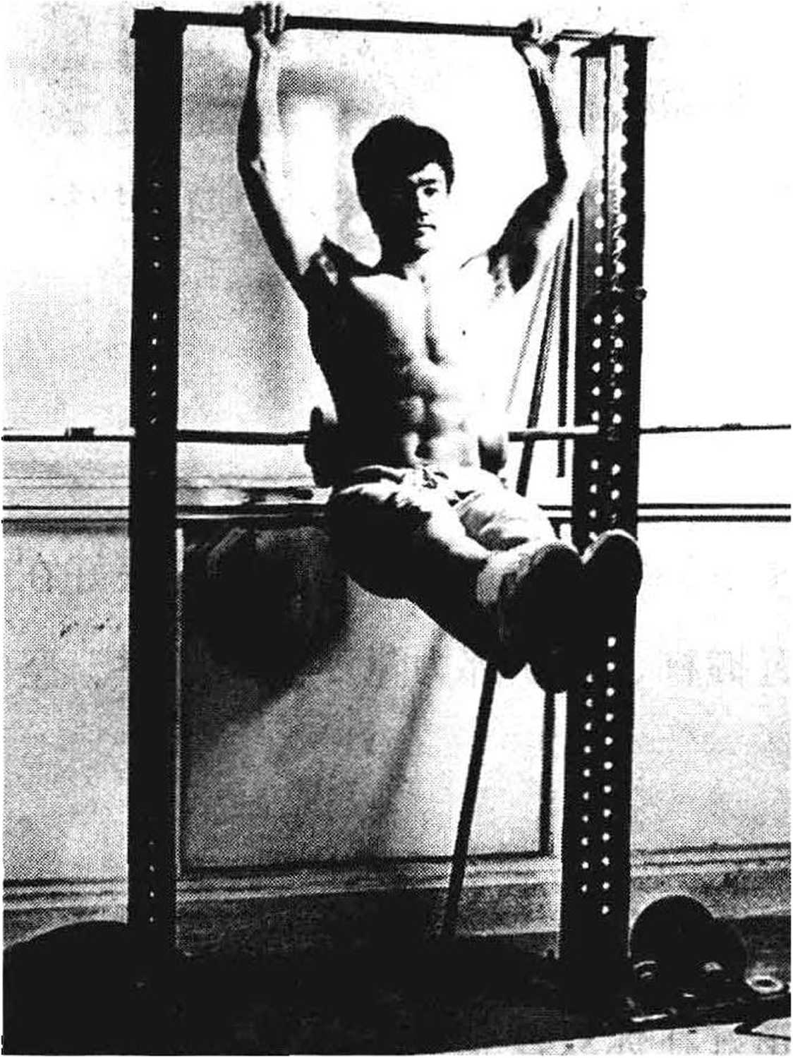 他将横杠固定在比自己胸部略低的位置,后退两步,用前臂尽全力向上举杠, 最大限度地收缩肌肉,一直坚持到12秒。这一练习让他通过前臂“流动自 己的能量”,极大地提高了前臂的力量与灵敏度。