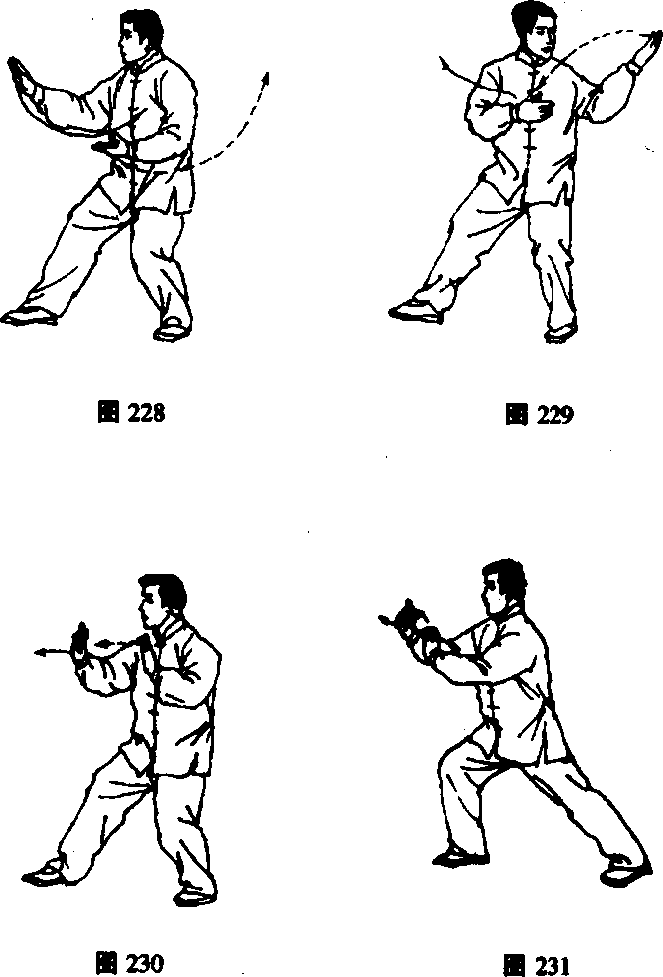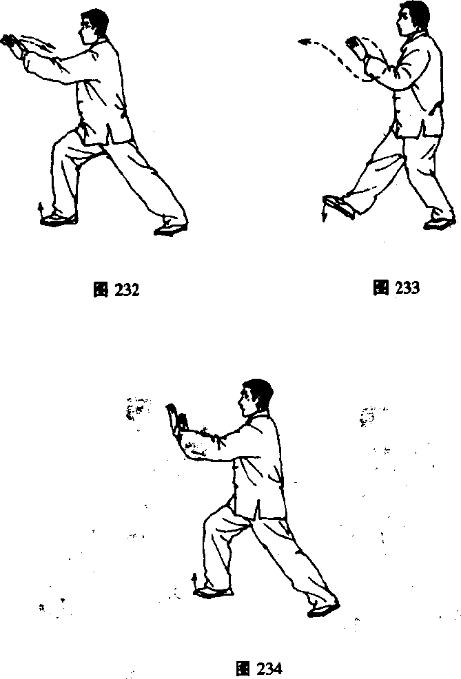 其余动作及要点均与前“上步揽雀尾”相同。(图226 ~234)动作熟练后,进步时脚尖可以不点地。