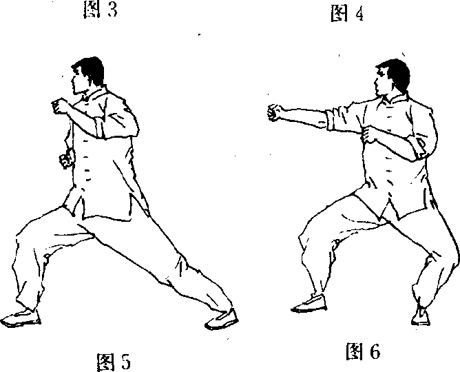 亦有攻击的作用。而且若不用拳,可用“摆掌式”,手掌的位置 可放在介于对手和自己的肩膀间。手臂下部亦可贴紧身体,傅 一定要放松、自然,并且进可攻,退可守,把双手运用得生龙活' 虎。以保持戒备、遮蔽身体、避免袭击。