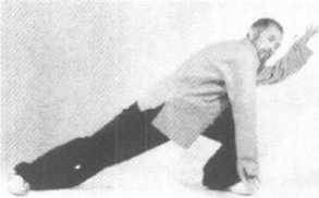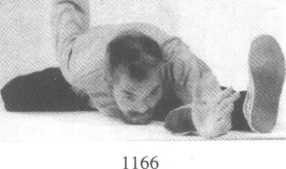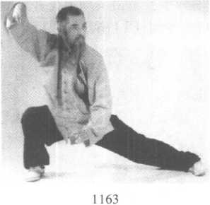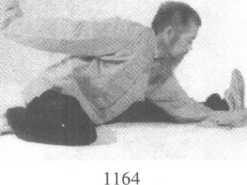 前式单鞭大马步成右扑步,右勾手不变,左掌移至右腋前徐 徐向下插入,同时成左弓步,左手经左膝前运行于右胸前,再次向 下插入,渐渐向左前方贴地运行,同时前胸贴地向左前方以腰带 身运移(图1160-1166) o1160 116111621165