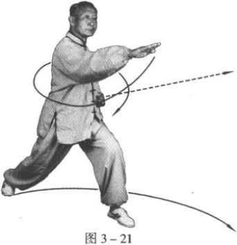 落于右脚前面,成左弓步; 图3-20