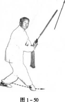 腹上;左剑指下落附腕,目视剑尖(图1 -47)。