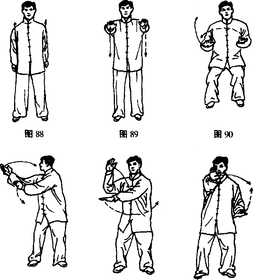 (-)原地左右“搂膝拗步”上肢练习
