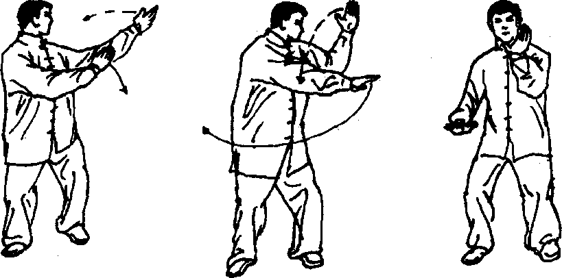 9 .屈肘收手:与动作3 “屈肘收手”相同,惟方向相