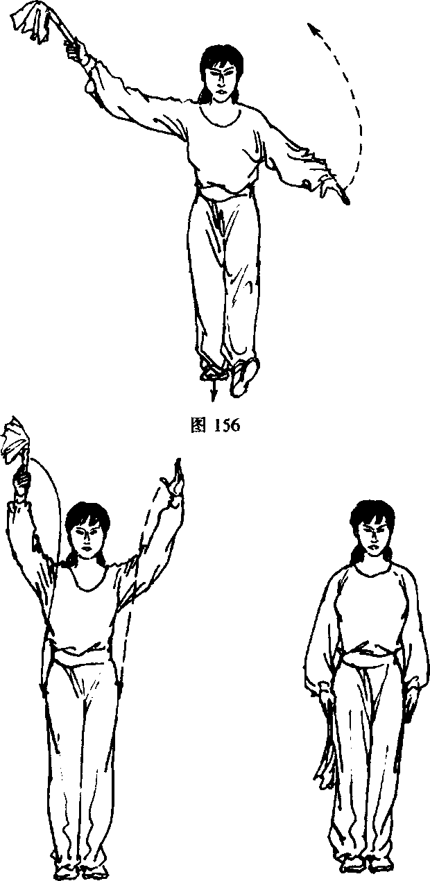 3 .两腿自然伸直,两手臂向前下落至身体两侧收式°目 视前方(图158) o