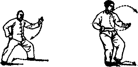 按照运动技能的要求来说。拳式愈简单,则愈难做好一动 全动的要求。此式仅右手一只手划圈,右足配合上下分虚实以 进行运动,这样的动作是比较简单的,因此是练习缠丝劲以达 到节节贯串的基本功。要达到一动全动,其要点仍在于腰脊的 带动和手臂劲的松开,如同鞭子一样划圈,这是做好此拳式的 关键所在。