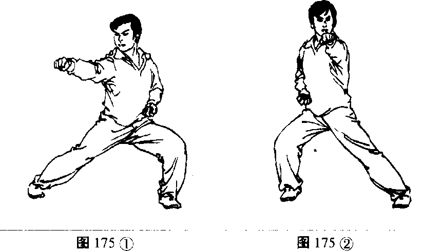 4 .左右势轮换练习(图175②)。
