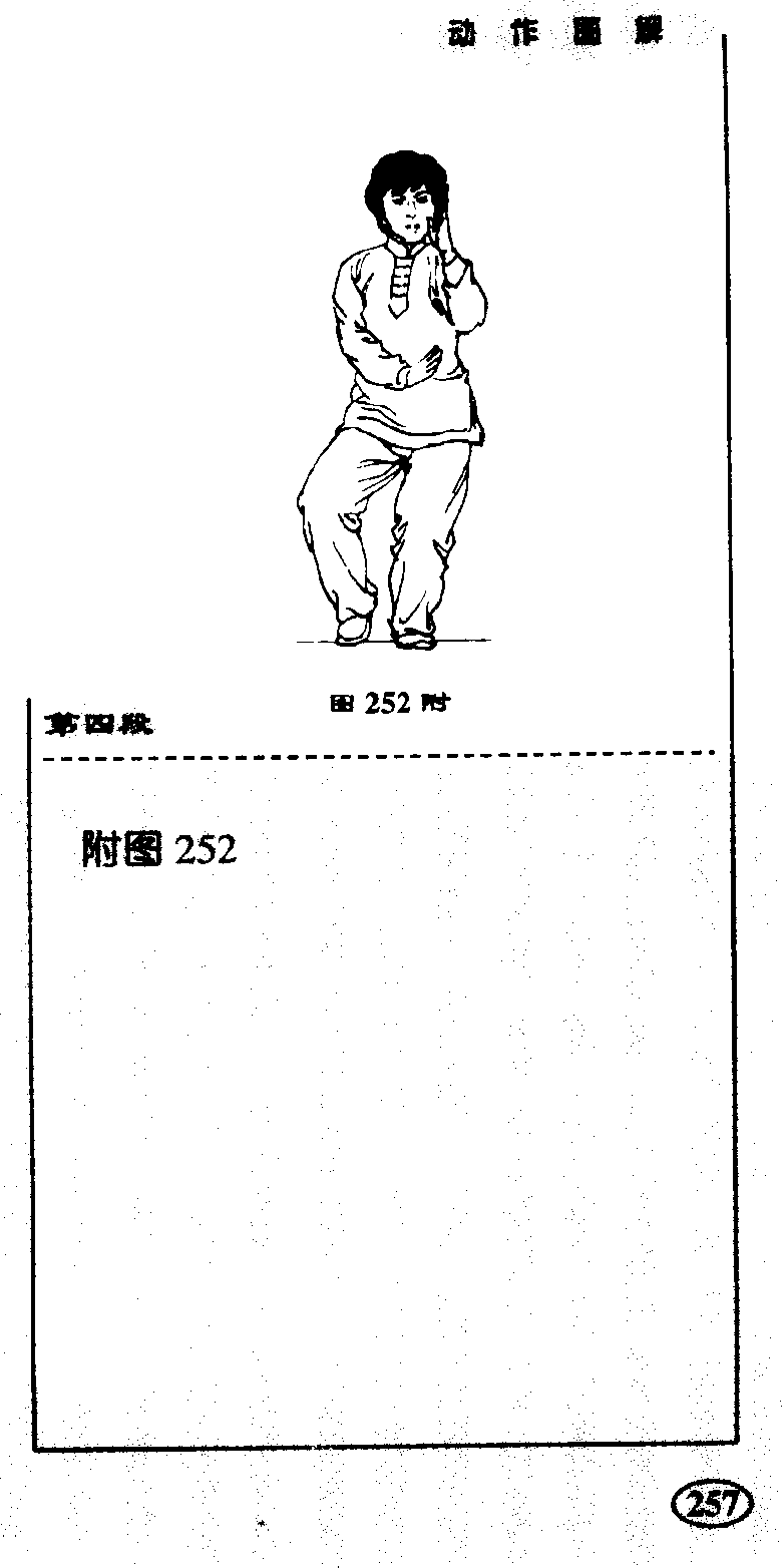 0B253心移向右M3,上体微右转,左手向右外旋凸腕。(253)