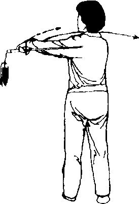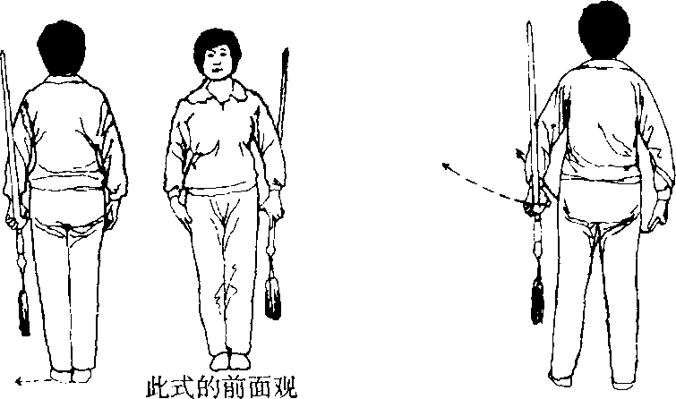 3. 为了方便读者查对动作,图中人体以背向读者,宛如教师 背向读者站立于前,便于读者仿照行动。即图中人体胸向南、背 向北,左侧为东,右侧为西。方向转变以人体胸部为准,胸向为 刖0