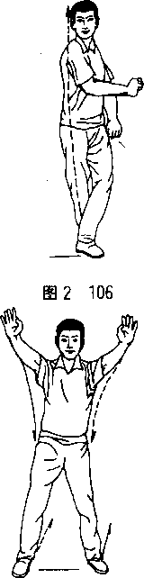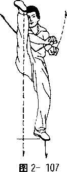 右腿朝前上蹬 踢,力达脚跟;左 脚支撑腿略屈。两 手不变。眼视正南。 (图 2—107)
