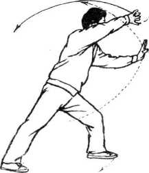 左手前撑右开弓, 开弓圆满气贴背, 一张一弛崩弹力, 若能知晓呼与吸, 此势能使气贯通。 力由脊发落点明。 好似箭矢脱弓弦。 一开一合玄机通。