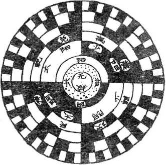 根据此图的原理,可以推演出阴阳二气这一对基本动力的若 干种变化,一化二、二化四,四化八……。所以太极拳的劲法、着 法变化无穷,鬼神难测其玄妙。太极拳高手已达到周身无处不太