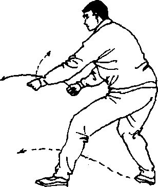 ②两拳向前插打,一定要重心后坐,左脚向后蹬,右腿松 胯下压,才能使出拳有力。