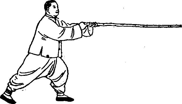 动之状)。一定要使周身之劲,由脚而腿而腰而脊而肩而两手, 以达杆头。发出的劲,使杆身从尾部起,直抖动至杆头,其中犹 如灌以水银。发后再收回为开,归还原状,开后再作合,所以这 三式可循环练习。