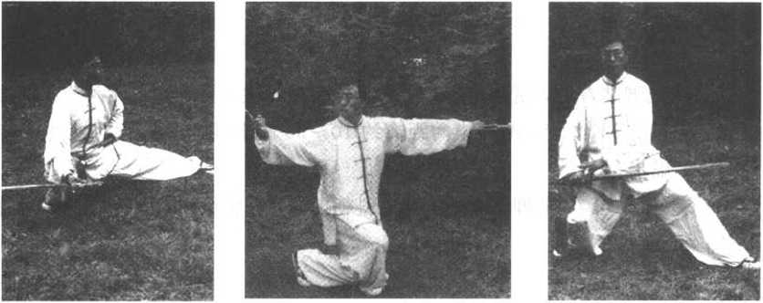 一腿全蹲,膝与脚尖稍外撇,另一腿自然伸直,平铺接近地面,脚尖内 扣,两脚着地(图8)o