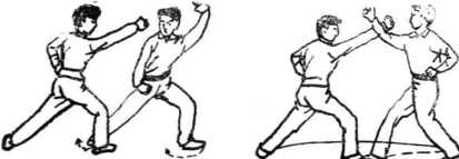 注意:上步与击拳必须同时、迅速、力猛,必须蹬足、 拧胯。