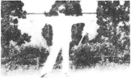 ?虚步双抱孙膑拐 双手握拐角内旋,由上经?向胸前 加瓜.夏经胸向上、向左、右侧摆起。同时上右步,身左转一两膝 上网.成疗虚步,.双腕内旋.屈臂转动手腕?使双拐卜落于两臂 匕拐把扣于左、右肘处。右臂托拐J二右膝前.左臂托拐于腰左 外侧,以待再战,目视右前方(图37)0
