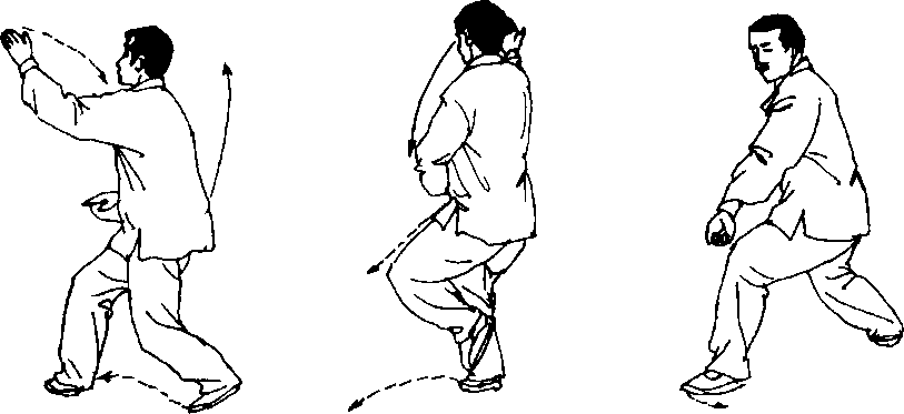 ③ 马步靠臂 上体左转,左脚向左前方上步,重心略向前