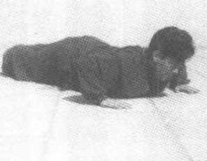 动作要点 两腿并步站立。身体向前、向下平扑着地;双手撑 地,随即两臂下落,落地要轻;两腿并拢并同时扑地。要抬头、挺