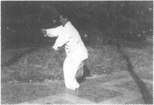 攻防方法:先以右臂摸击对方胸部或面部,如若对方拦截,我 即以右戳丁脚戳击其脚面或胫骨。