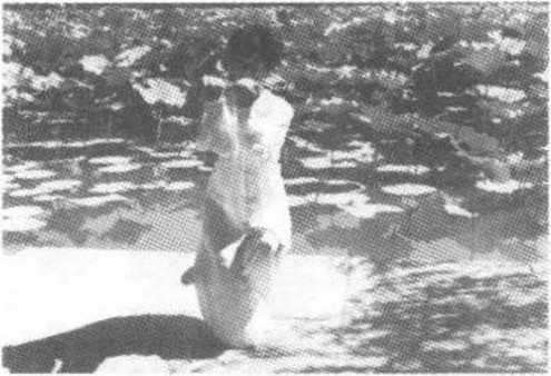 要点:此势屈膝、收腹、顺肩、拧腰。两臂要活,幅度要大,动作