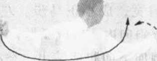 2. 身体向左转,双腿缠法仍为左顺右逆,左膝弓塌;右腿 用脚尖贴地向右后方退一大步,成左弓步。随之左拳变顺缠,向 下向内划孤至腹前再沿身体向上至胸前,变逆缠向左前方转出, 手同胸高,臂成弧形,拳心向下;同时右拳变顺缠,向内至腹前 再沿身体向上至胸前,随左手转动也变逆缠,向左前方转出至左 肘内侧,拳心向下。眼看左前方。(图4-278)