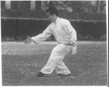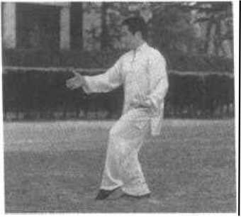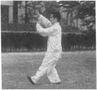 【技击作用】若对方抓我左腕时,我先下采左手,令其前仆。 【教学要点】跟步时注意身体的平稳、虚实的变化。